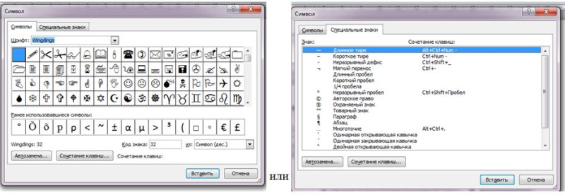 Кроме букв, цифр и знаков препинания, в текст можно вставлять специальные символы: