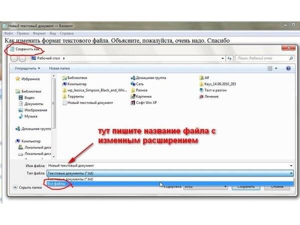 Как изменить тип файла в windows 7