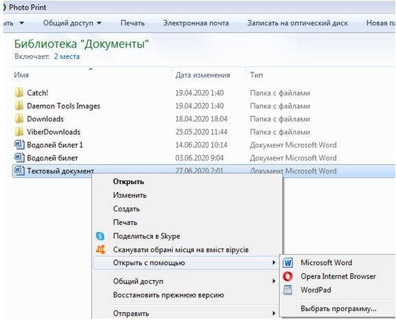 Программа для открытия текстового файла выберется по умолчанию. Если она не установлена, нужно воспользоваться командой «Открыть с помощью» и выбрать нужное приложение: