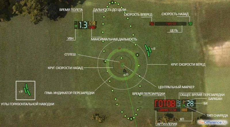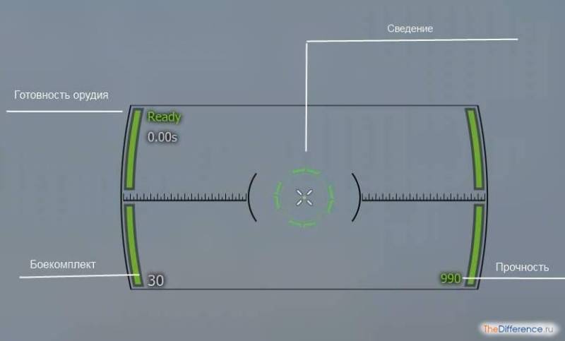 Улучшенные прицелы обладают целым набором дополнительных функций. К примеру, на них отображаются время перезарядки и состояние орудия, количество снарядов в боекомплекте, шкала бронепробития, дальность до цели и т.д.