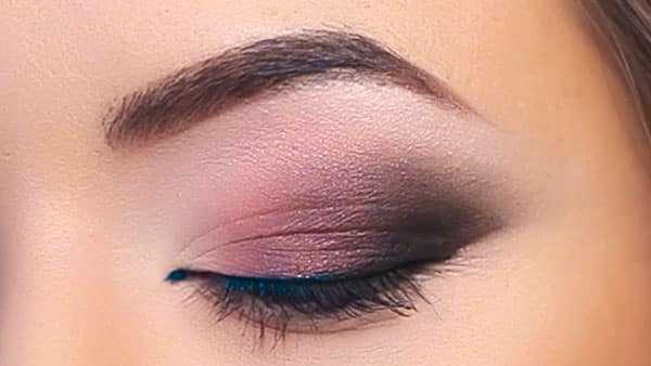 На основную часть подвижного века наносятся светлые матовые тени. После нужно растушевать границы и сделать тонкую межресничную стрелку. Завершить такой мягкий смоки айс помогут накладные реснички, которые создадут еще одну тень на опущенных веках.