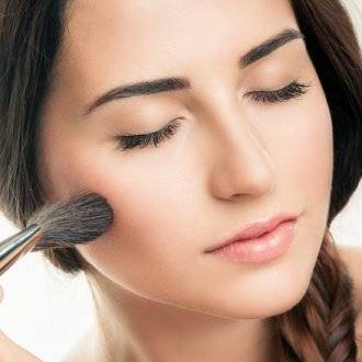 - Закрепите результат рассыпчатой пудрой. Нанесите немного румян розоватого оттенка.