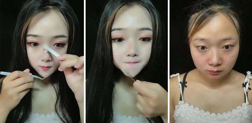 Часто азиатские девушки, женщины хотят увеличить разрез глаз за счет верхнего века. Для этого сейчас имеются в продаже самоклеящиеся полоски бумаги или же специальный клей. Полоски наклеиваются, а клей узкой косметической лопаточкой наносится на границу между краем ресниц и верхнего века. Клей можно нанести равномерно или таким образом, чтобы полоска клея расширялась у внешнего или внутреннего края глаз. Визуально увеличить разрез верхнего века можно также с помощью прорисовывания мнимой складки на верхнем веке.