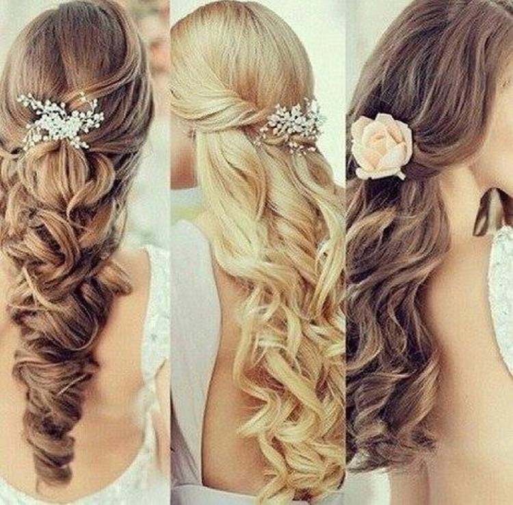 Прическа с полураспущенными волосами. При этом варианте укладки основную часть прядей оставляют свободными. Можно лишь заколоть тонкую прядку сбоку либо на затылке.