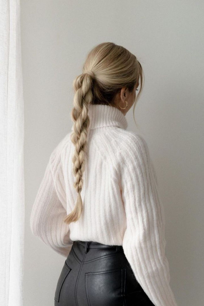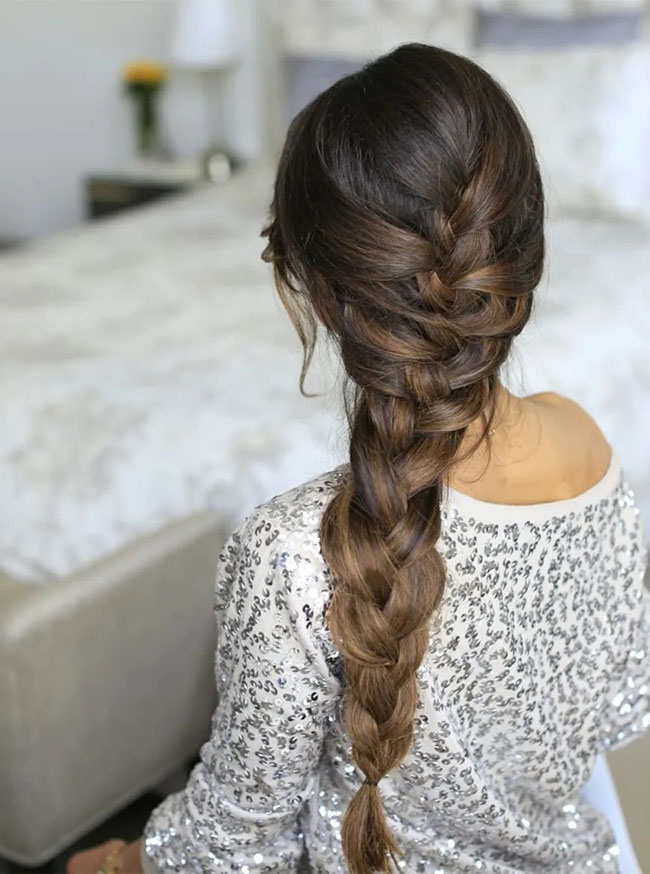 Интересная интерпретация привычного конского хвоста. Это смесь хвостика и косы. Чем больше длина — тем эффектнее вид. Занимает первые места в рейтинге стильных причесок.