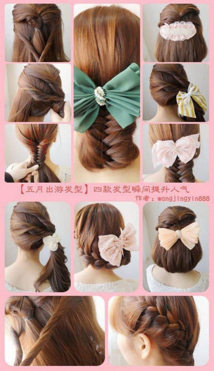 Только посмотрите, сколько красивых и очень легких укладок можно сделать обычной заколочкой-бантом. Идеально подходит для молодых девушек и девочек.