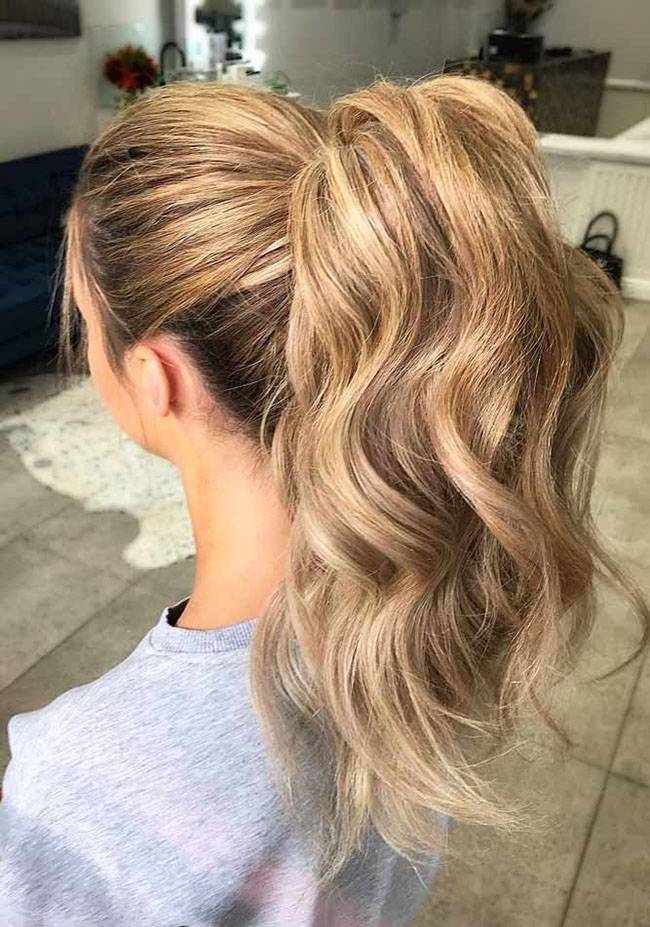 - Соберите расчесанные волосы в высокий хвост на макушке.