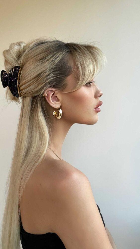 Милый способ собрать прядки от лица и оставить длину распущенной.