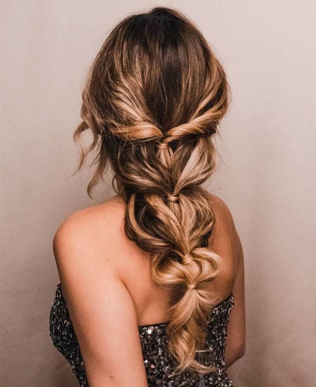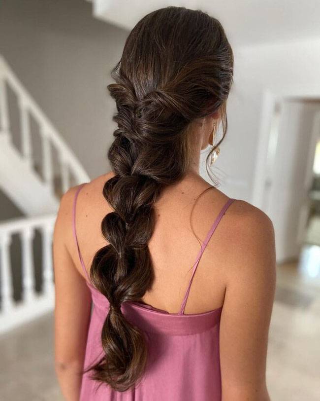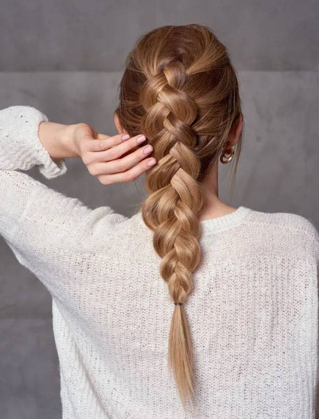 Интересная интерпретация привычного конского хвоста. Это смесь хвостика и косы. Чем больше длина — тем эффектнее вид. Занимает первые места в рейтинге стильных причесок.