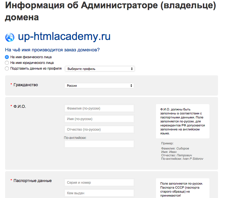 После регистрации пользователя, нам предложат заполнить анкету, в которой необходимо заполнить информацию о себе, в том числе паспортные данные и почтовый адрес.