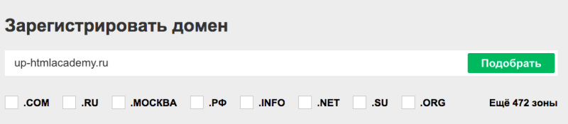 Здесь необходимо ввести своё название сайта и выбрать зону, в которой вы хотите его зарегистрировать.
