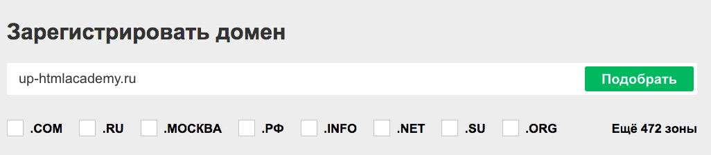 Здесь необходимо ввести своё название сайта и выбрать зону, в которой вы хотите его зарегистрировать.