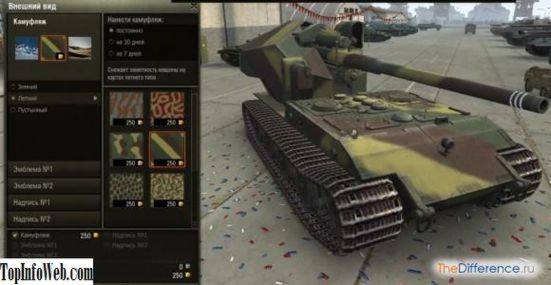 У більшості ігор у користувача є можливість “кастомизировать” героя. Наприклад, в гоночних симуляторах реально встановити на автомобілі нові обважування або змінити забарвлення кузова. У World of Tanks гравці можуть нанести камуфляж, емблеми і написи на будь-яку бойову техніку. Але, на відміну від камуфляжу, написи і декали не несуть ніякого функціонального користі. Що стосується “бойового забарвлення”, то камуфляж знижує помітність бойової машини на п’ять відсотків. Як купити камуфляж в World of Tanks?