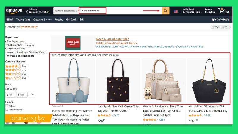 Есть также возможность поиска по типу товара, например, по цвету или размеру. Кроме того, можно искать товары по ключевым словам, таким как «сумка», «ноутбук», «телефон» или «одежда». Товары разбиты по категориям, поэтому их проще искать. Например, если хочется купить новую сумку, то можно выбрать категорию «Сумки», а затем «Женские сумки». Кроме того, к каждому товару есть описание, фото и отзывы других покупателей. Amazon также даёт возможность оформить заказ в режиме онлайн.