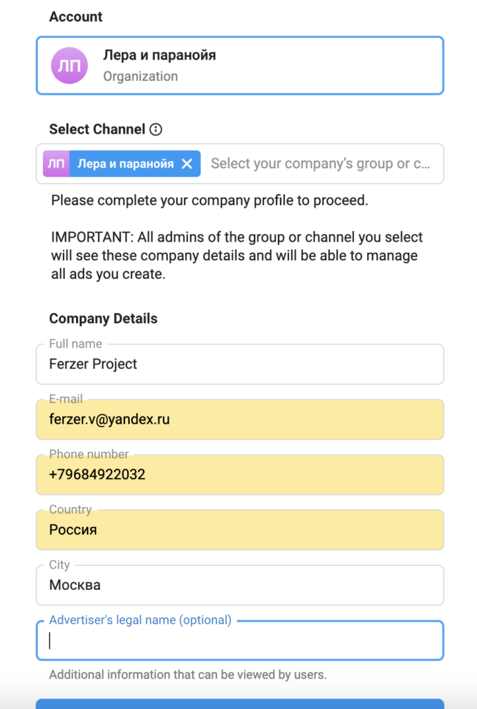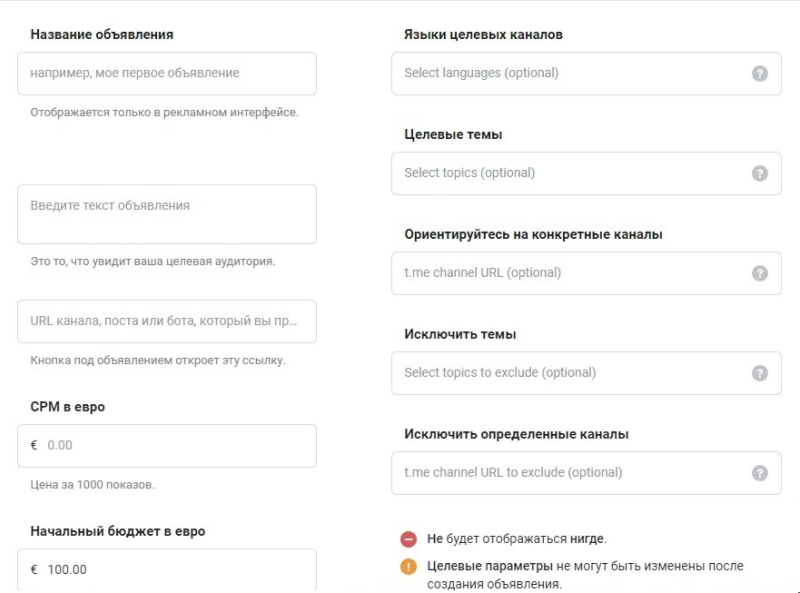Настройка рекламной кампании в Telegram Ad