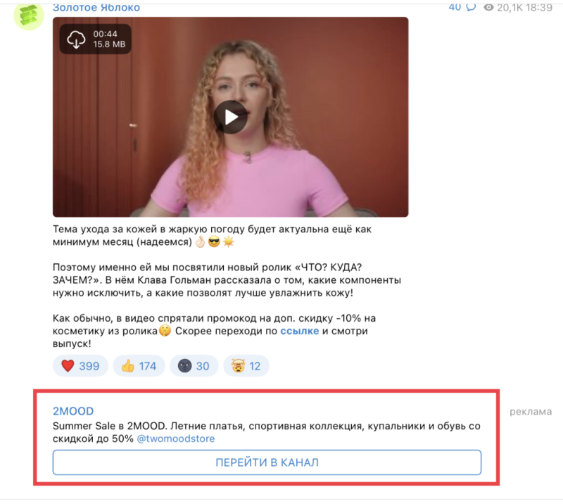 Пример объявления в Telegram Ad