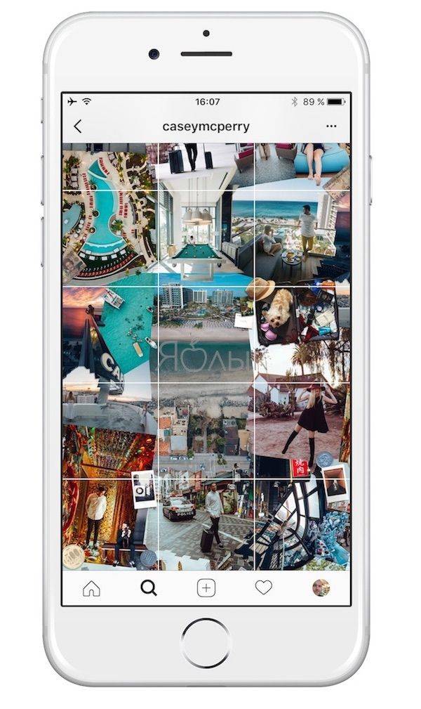 Фотограф Кейси Макперри наполняет свой аккаунт таким образом, что миниатюра каждого фото или видео всегда связана с предыдущим медиафайлом – получается одна бесконечная картина-мозаика:
