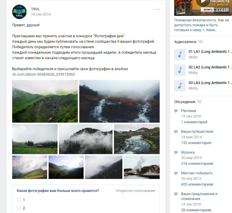 Конкурс с голосованием в группе