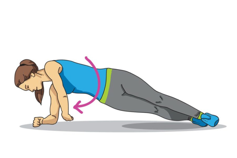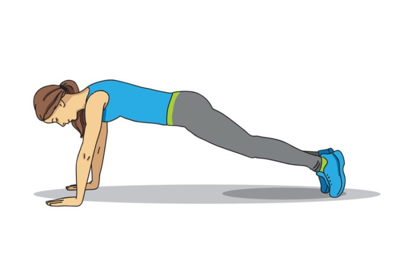 Руки вытянуты, мышцы пресса напряжены и поддерживают вес тела. Задержитесь в неподвижном положении. Для усложнения упражнения можно поочередно поднимать ноги вверх. 3-4 подхода по 60-80 секунд