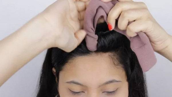 Процедура завивки волос бубликом из носка