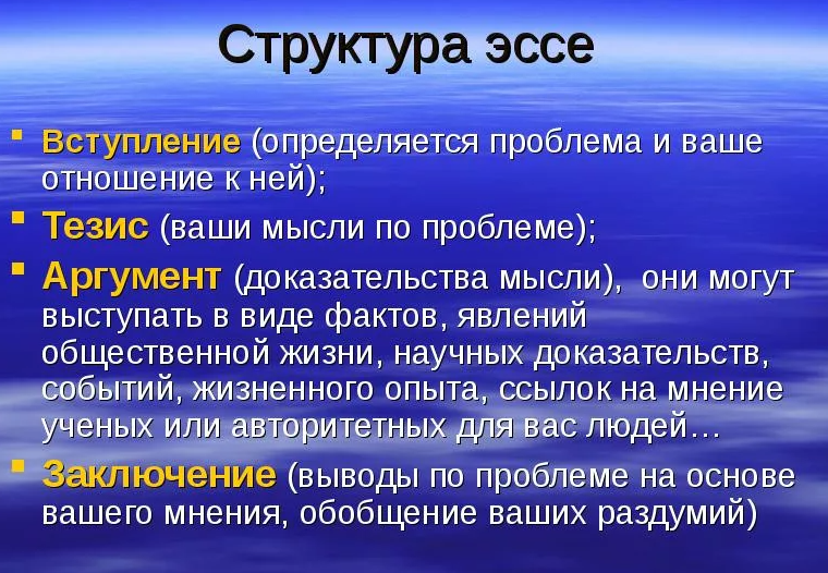 - При написании эссе придерживайтесь темы и основной идеи. Старайтесь не уходить в сторону, следите за логичностью мысли.
