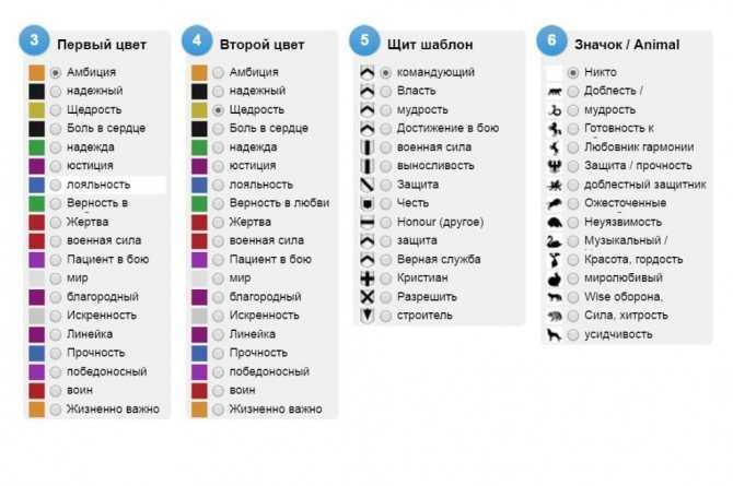Используйте выбранные элементы, чтобы заполнить шаблон герба.