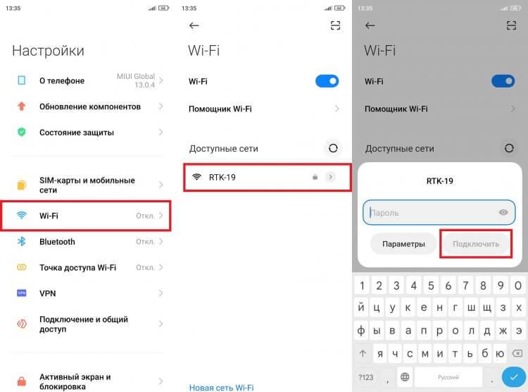 На Android: «Настройки» > «Подключения» > «Wi-Fi» (передвинуть переключатель) > в списке доступных сетей найти свою, ввести пароль > «Подключиться».