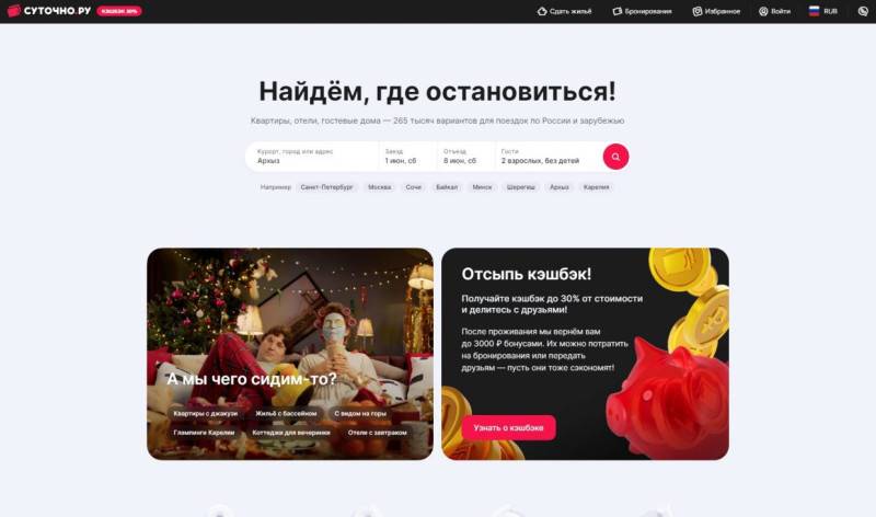 Суточно.ру специализируется в первую очередь на сдаче квартир и домов, такой вот аналог Airbnb.
