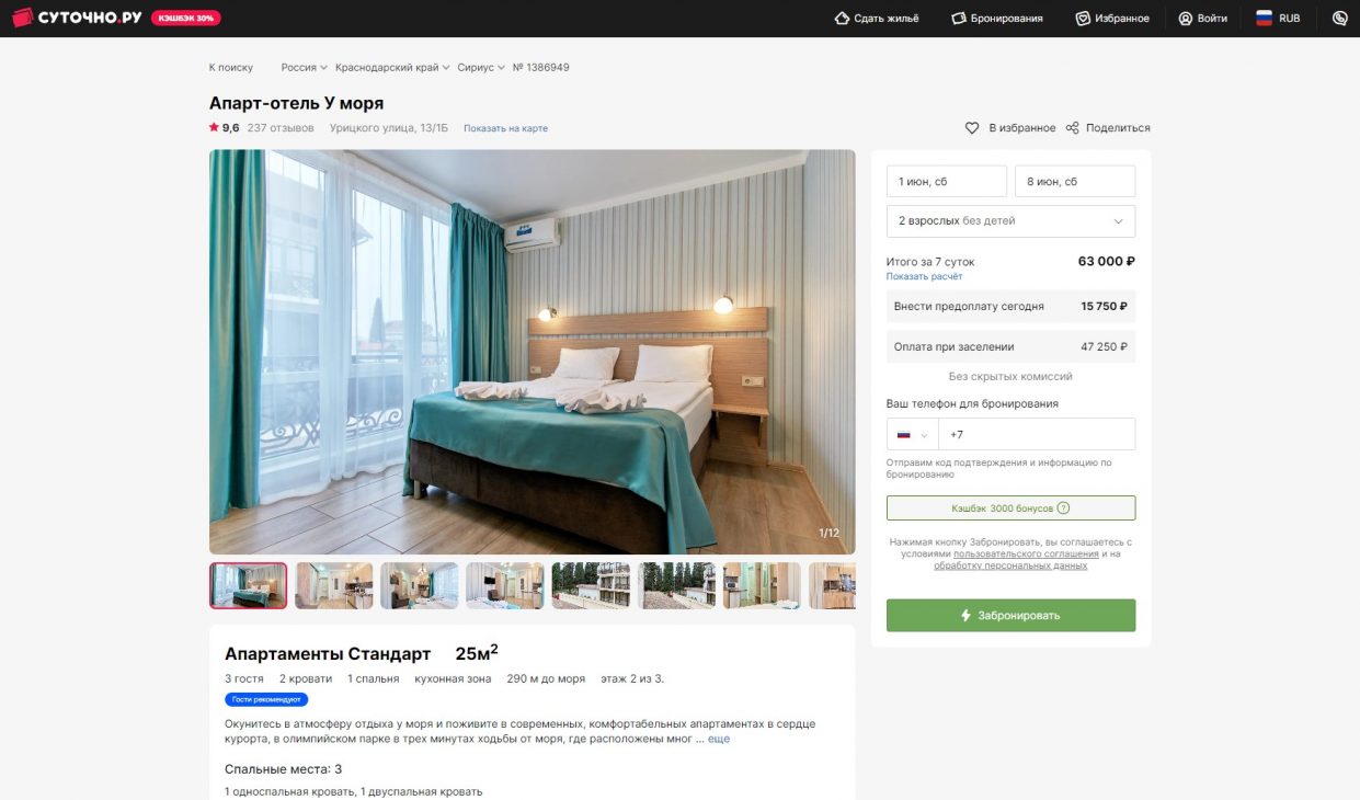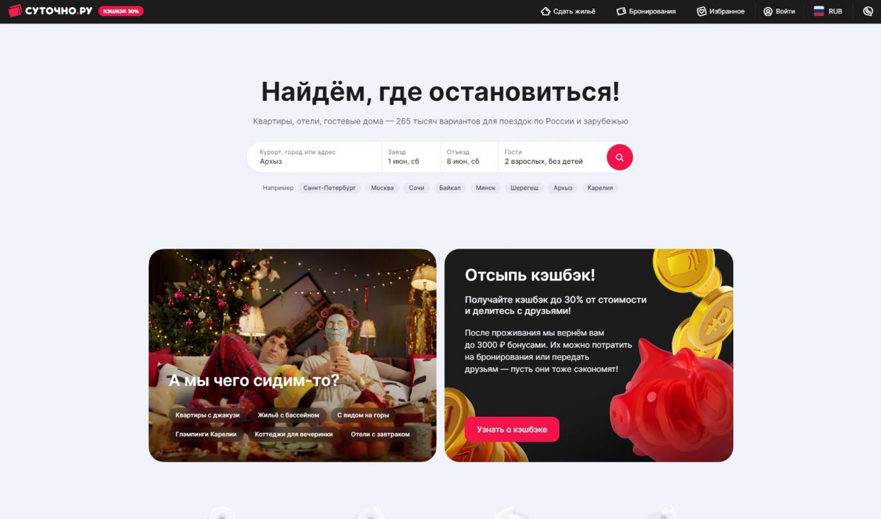 Суточно.ру специализируется в первую очередь на сдаче квартир и домов, такой вот аналог Airbnb.