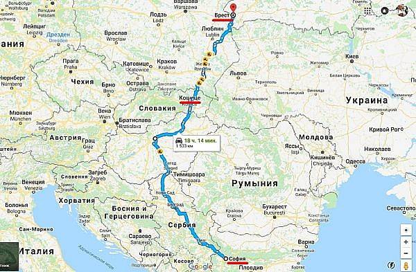 Расскажу на примере из личной практики. Выполнялся перегон по маршруту София — Брест. По расчету, отдых (чисто ночевка) был запланирован в городе Кошице (Словакия):