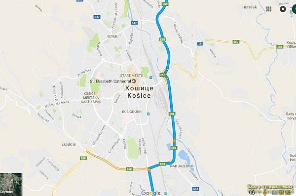 Маршрут вокруг Кошице проходит по объездной дороге: