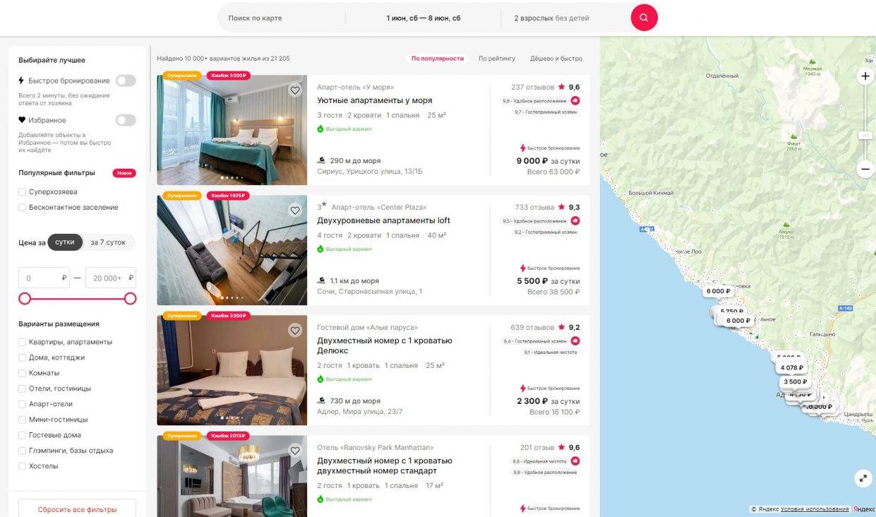 Сайт очень сильно напоминает одновременно и Booking, и TripAdvisor, разобраться в нём несложно. Это старый проект, который получил сильный «буст» с уходом международных компаний из России. Некоторые вещи смотрятся устаревшими, но в целом всё работает нормально – кроме того, что при первом открытии надо подождать секунд 20, прежде чем подгрузятся фирменные шрифты.