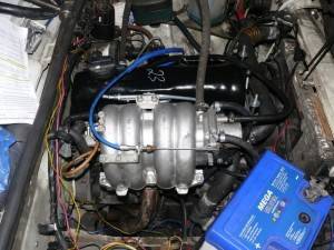 Далее демонтируем составляющие элементы старой карбюраторной системы. Для начала снимаем трамблер, далее – аккумулятор, бензонасос, карбюратор, проводку от системы зажигания, старый бензобак, коммутатор, трубки и панель приборов. После этого берем провод “+” от замка зажигания, отвечающий за тахометр и проталкиваем его в салон автомобиля. Отдельный провод нам также понадобится для датчика “CHECK ENGINE”. Оба провода сматываем в жгут.