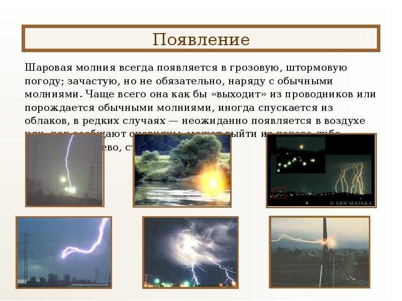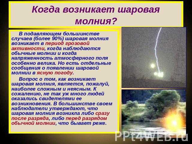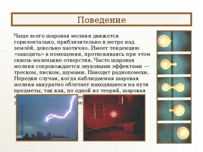 Исследования, как возникает шаровая молния, не привели к единому выводу, но позволили систематизировать знания, полученные от очевидцев:
