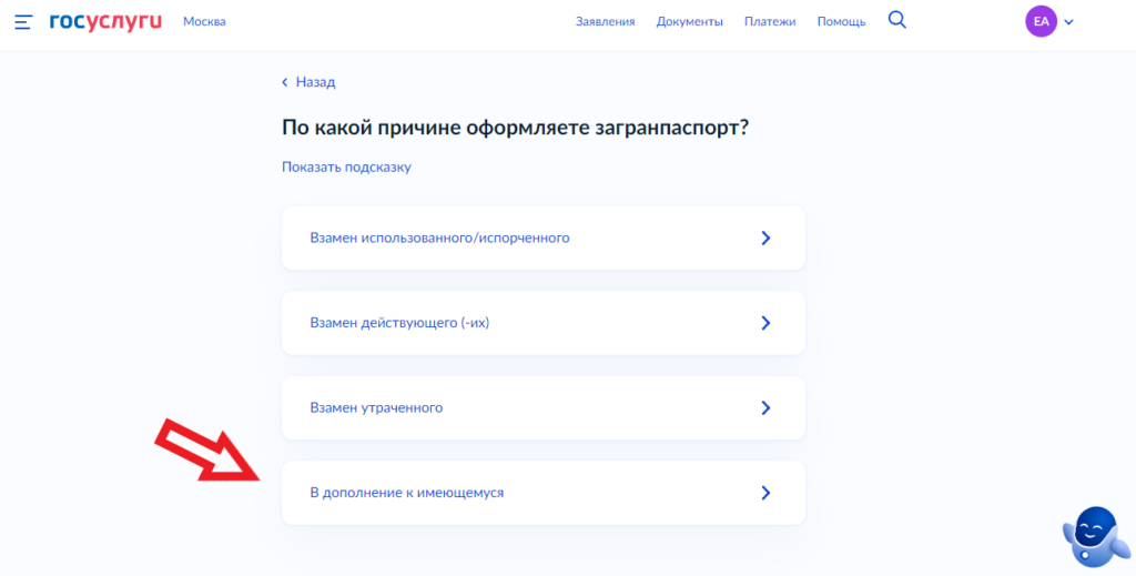 - И отвечать на вопросы робота, что именно вам нужно — загранпаспорт на ребёнка новый или старый, возраст ребёнка и т.д.