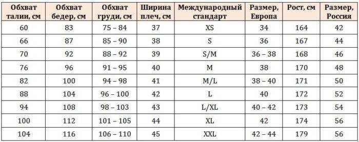 Таблица соответствия размеров “s m l” на русский: