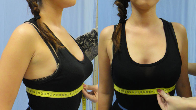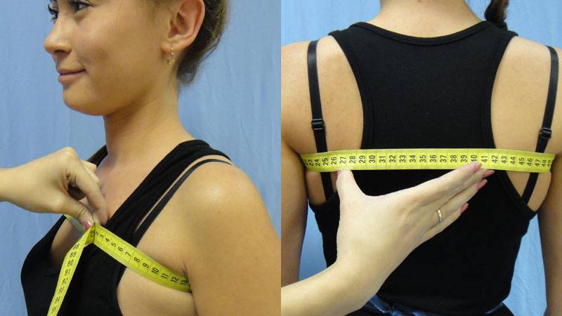 - обхват тела под грудью можно установить при помощи мерной ленты. Самую широкую часть, расположенную под грудью, опоясывают лентой под руками;