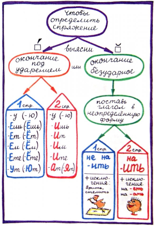 Эта легкая формула поможет разобраться, какую букву ставить в окончании глаголов. Варианты безударных гласных собраны в таблицу. Чтобы запомнить часто применяемые исключения, пользуются стихотворениями.
