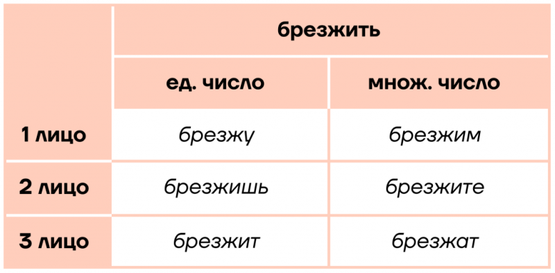 Глагол брезжить не употребляется в первом и втором лице. Что же касается третьего лица, то в единственном числе глагол приобретает окончание второго спряжения (брезжит), а во множественном числе – окончание первого спряжения (брезжут).