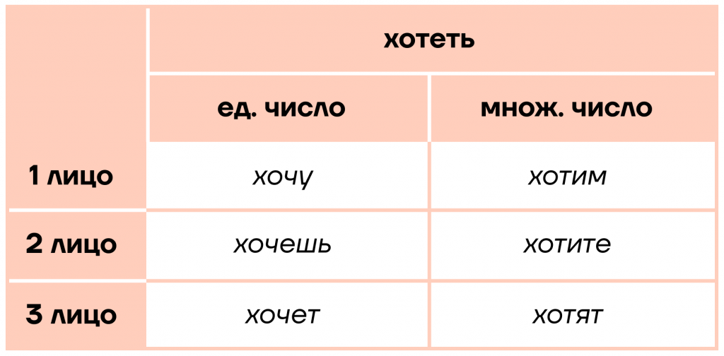 Проанализируем формы глагола хотеть. В единственном числе он имеет окончания первого спряжения: хочешь, хочет. А вот формы множественного числа спрягаются уже по второму типу спряжения: хотим, хотите, хотят.
