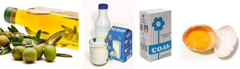 Все продукты соедините и тщательно размешайте до образования однородной массы. Полученное средство положите на локоны и оставьте на всю ночь. Если же вы процедуру проводите с утра, то данную маску следует держать на волосах 8 часов. Отметим, что после процедуры голову следует помыть с применением шампуня. С помощью данного состава можно осветлить русые локоны. Темные пряди незначительно изменят цвет, поэтому данный способ не подойдет брюнеткам.