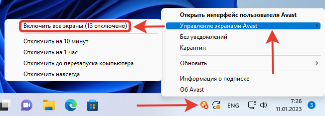 Как снова включить Avast вручную