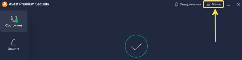 Переход в главное меню Avast