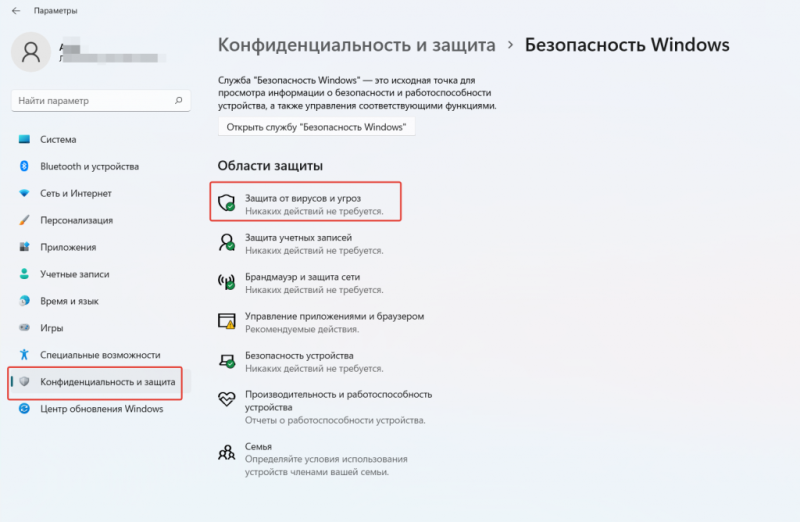 - Перейдите в раздел «Защита от вирусов и шпионских программ».