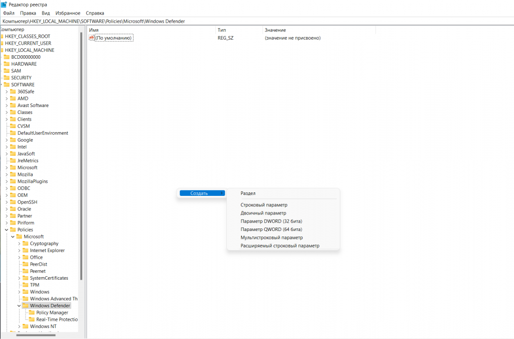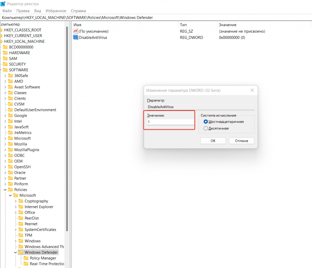 Как отключить антивирус Виндовс 11 с помощью реестра