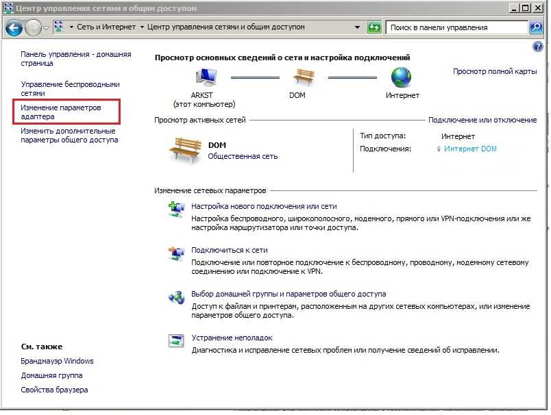 Шаг 4. На экране Центра управления сетями и общим доступом перейдите на панель слева и найдите параметр с надписью «Изменить параметры адаптера». Нажмите «Изменить параметры адаптера», чтобы открыть окно «Сетевые подключения».