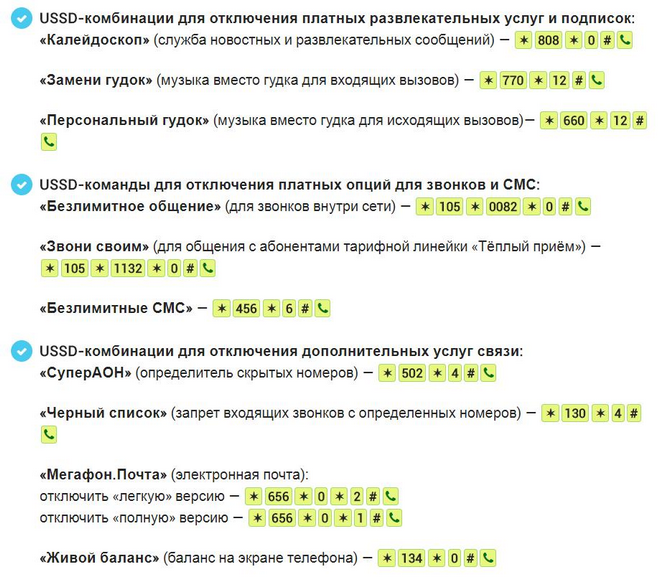 Большинство услуг на Мегафоне можно отключить посредством СМС