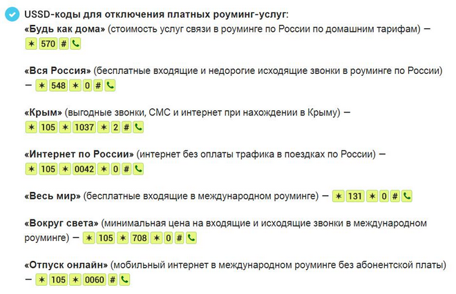 Для отключения опций можно отправить USSD-запрос. Для этого отошлите USSD на *505#, и нажмите клавишу «Позвонить». Спустя минуту на мобильный придёт сообщение с перечнем подключенных опций. Рядом с названием каждой из услуг, будет находиться кодовое значение, при помощи которого можно удалить подписку.