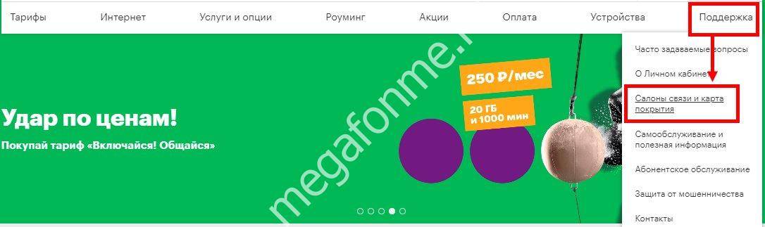 Узнать адрес ближайшего салона связи можно на сайте оператора или в мобильном приложении. Откройте подраздел «Салоны связи и карта покрытия» в разделе «Поддержка». А еще данная информация доступна в Личном кабинете Мегафон.