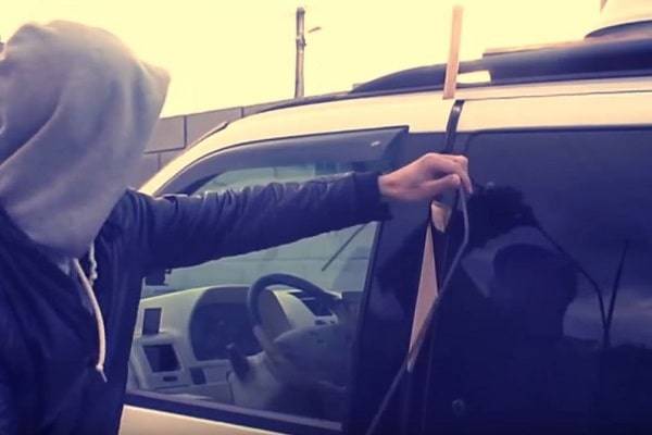 Открыть авто таким способом пытаются многие угонщики. Это довольно щадящий метод. Суть его заключается в следующем. Нужно добыть кусок веревки, лески или шпагат. Затем необходимо отжать верхний угол водительской двери от кузова до появления щели. Перед этим желательно оклеить дверь скотчем.